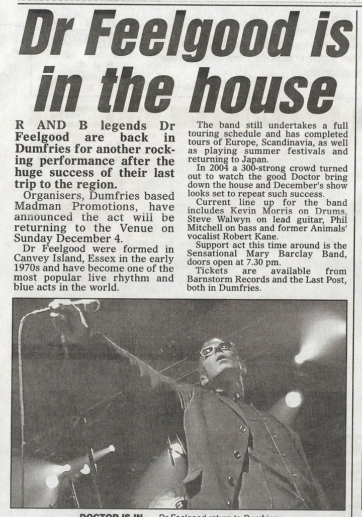 Mayo left the band in 1981. Despite this, and various subsequent line-up changes, Dr. Feelgood continued touring and recording, although the band then suffered an almost career-finishing blow, when their frontman, Brilleaux, died of cancer on 7 April 1994. But, as Brilleaux had insisted prior to his demise, Dr. Feelgood reunited, initially with vocalist Pete Gage, and recommenced touring in 1996.